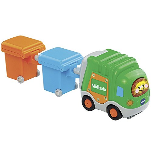 VTech Tut Tut Baby Flitzer - Muellauto + 2 Muelltonnen Das Müllauto mit 2 Mülltonnen von Vtech sorgt für eine saubere Tut Tut Babyflitzer-Welt. Das Müllauto animiert zum Spielen und unterhält Ihr Kind mit fröhlichen Sätzen, Liedern und Melodien. Merkmale: Müllauto mit Mülltonnen zum anhängen, spricht fröhliche Sätze und macht lustige Geräusche, spielt Melodien und Lieder, eine leuchtende Taste zum Drücken, reagiert auf Bewegung der Räder, reagiert auf Sensoren der Tut Tut Spiel-Sets (seperat erhältlich), Anhängerkupplung, 3 gesungene Lieder, 6 Kindermelodien, Kindersicheres Batteriefach und Abschaltautomatik, Demobatterien enthalten, Altersempfehlung des Herstellers: 1 - 5 Jahre Lerninhalte: Sätze, Musik, Geräusche, MelodienDienstbereites Müllauto mit 2 Mülltonnen der Tut Tut Baby Flitzer