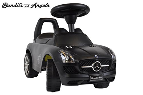 Das allercoolste Laufauto ist dieser Mercedes-Benz SLS AMG in Schwarz Matt von Bandits & Angels. Dieser extravagante Rutscher ist ausgestattet mit Musik (diverse Lieder), einem echten Lenkrad und Hupe. Aufgrund der niedrigen Sitzhöhe, nur 23 cm, ist dieses Rutschauto bereits für Kinder ab 1 Jahr geeignet. Klappt man den Sitz hoch, dann öffnet sich ein Geheimfach, in dem man kleines Spielzeug oder Fundstücke mitnehmen kann. Abmessung 65x29x39 cm.Rutschauto Mercedes-Benz SLS AMG
